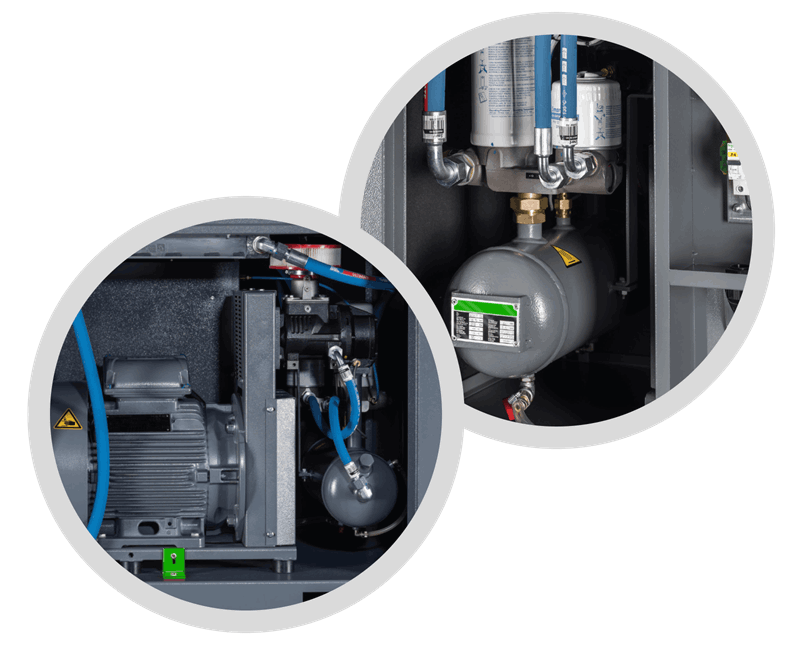 - Mulighet for tørker- og tankmontering (2,2-22 kW)